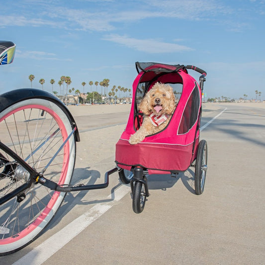 All Terrain Pet Jogger/Stroller/Bike Trailer - Blazin Berry, Shock Absorbing Bike Wheels, Adjustable Handlebar, Dual Brake, for Small/Medium/Large Dogs, Cats, Supports up to 77LBS