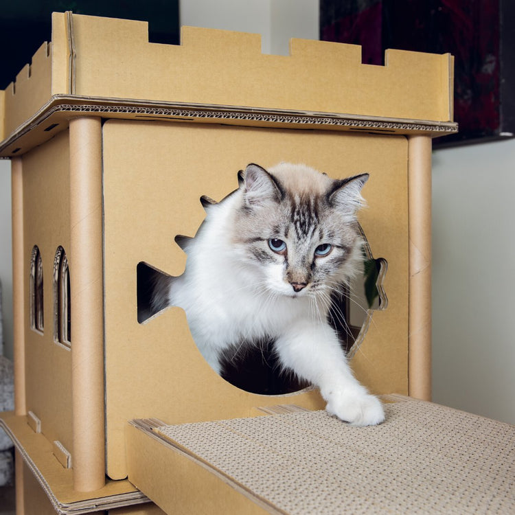 Feline Chateau Cat House: Eco-Friendly, Non-Toxic, Easy Assembly, Sustainable, Compostable, Lightweight, Sturdy, Recycled Cardboard, 5 Scratch Boards, Multi-Level, SUPPORTS UP TO 30 LBS