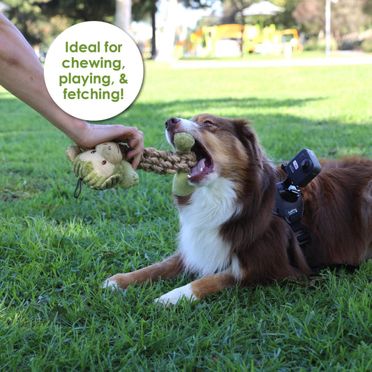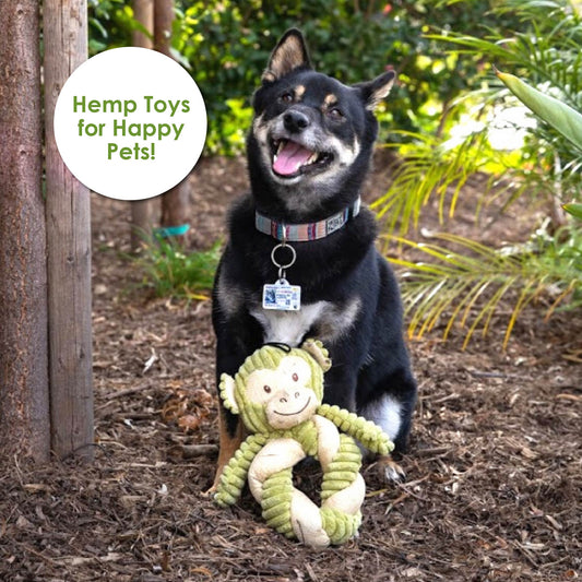 Tough Hemp Monkey Dog Toy, Fun Squeaker, Mentally & Physically Stimulates, Large Hemp Rope Body for Chewing, Tough Hemp for Play & Fetch, Non-Toxic, Cleans Teeth, Variety of Textures, for Pets