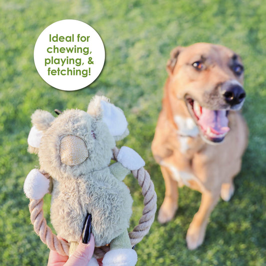 Hula Hemp Rope Koala Dog Toy: Fun Squeaker in Head, Stimulates Pets Mentally & Physically, Tough Hemp Rope for Holding, Fetching, & Tug of War, Non-Toxic, Cleans Teeth, Variety of Textures, for Pets