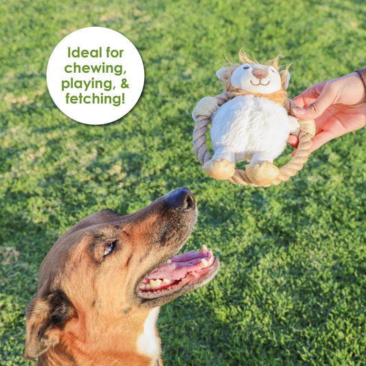 Hula Hemp Rope Lion Dog Toy: Fun Squeaker in Head, Stimulates Pets Mentally & Physically, Tough Hemp Rope for Holding, Fetching, & Tug of War, Non-Toxic, Cleans Teeth, Variety of Textures, for Pets