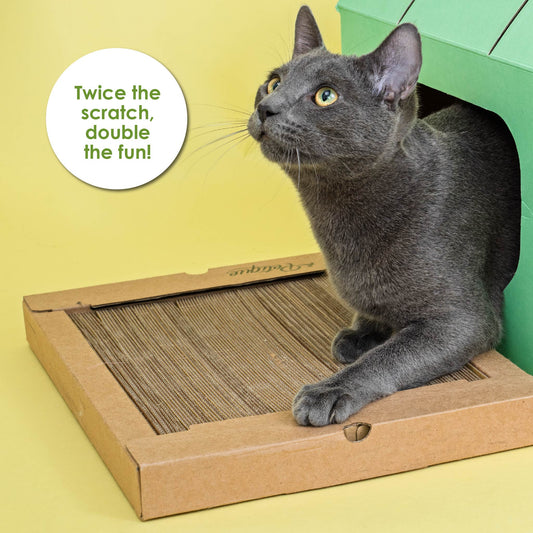 Scratch Pad Cat House: Large Double-Sided Scratch board, 100% Non-Toxic, Eco-Friendly, Sturdy, Easy to Build, Lightweight, Durable Cardboard, No Formaldehyde, Sustainable, Compostable, Recyclable, for Cats, Bunnies, Small Animals