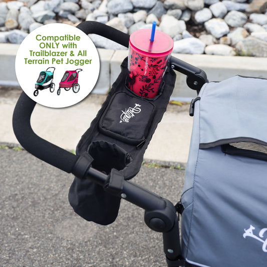 Portable Stroller Organizer: Easy Attach & Secure, Fits Pet Jogger/Stroller Handles, Stores Beverages, Phones, Treats, Keys, Foldable into Pouch, Secure Pocket, Holds 2 Cups, COMPATIBLE ONLY with our Trailblazer Pet Jogger & All Terrain Pet Jogger