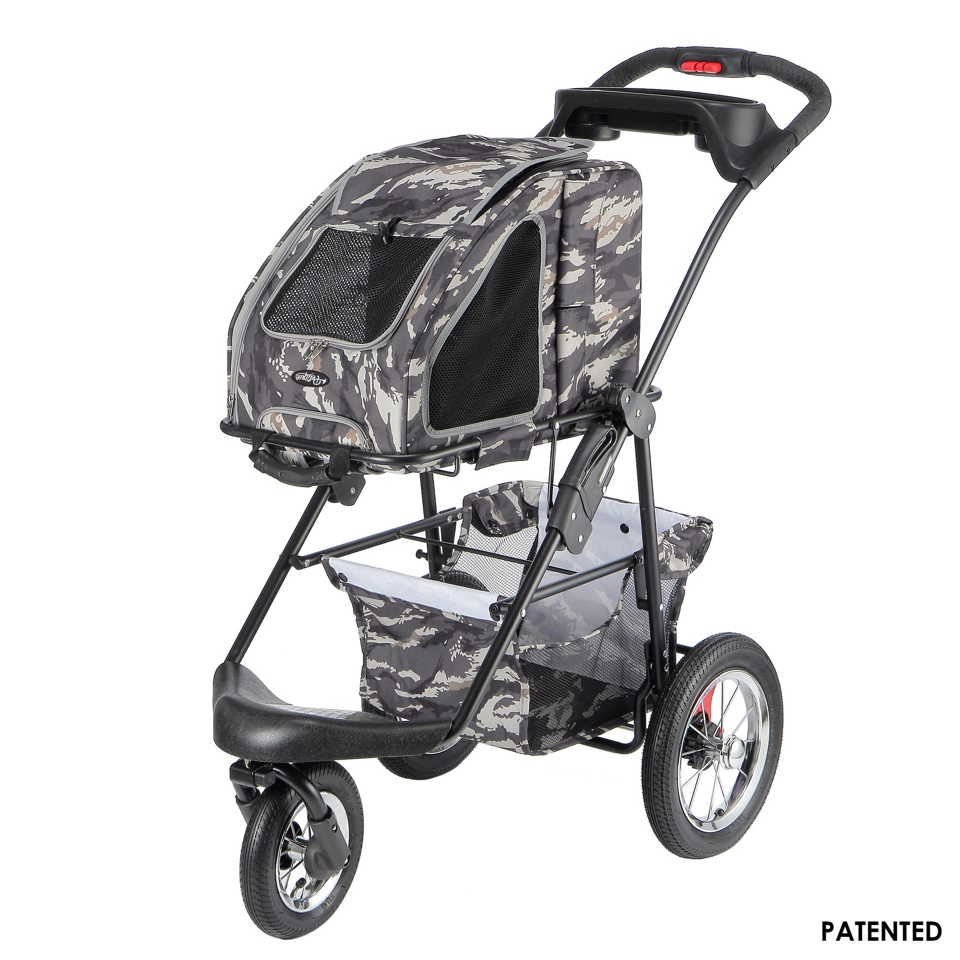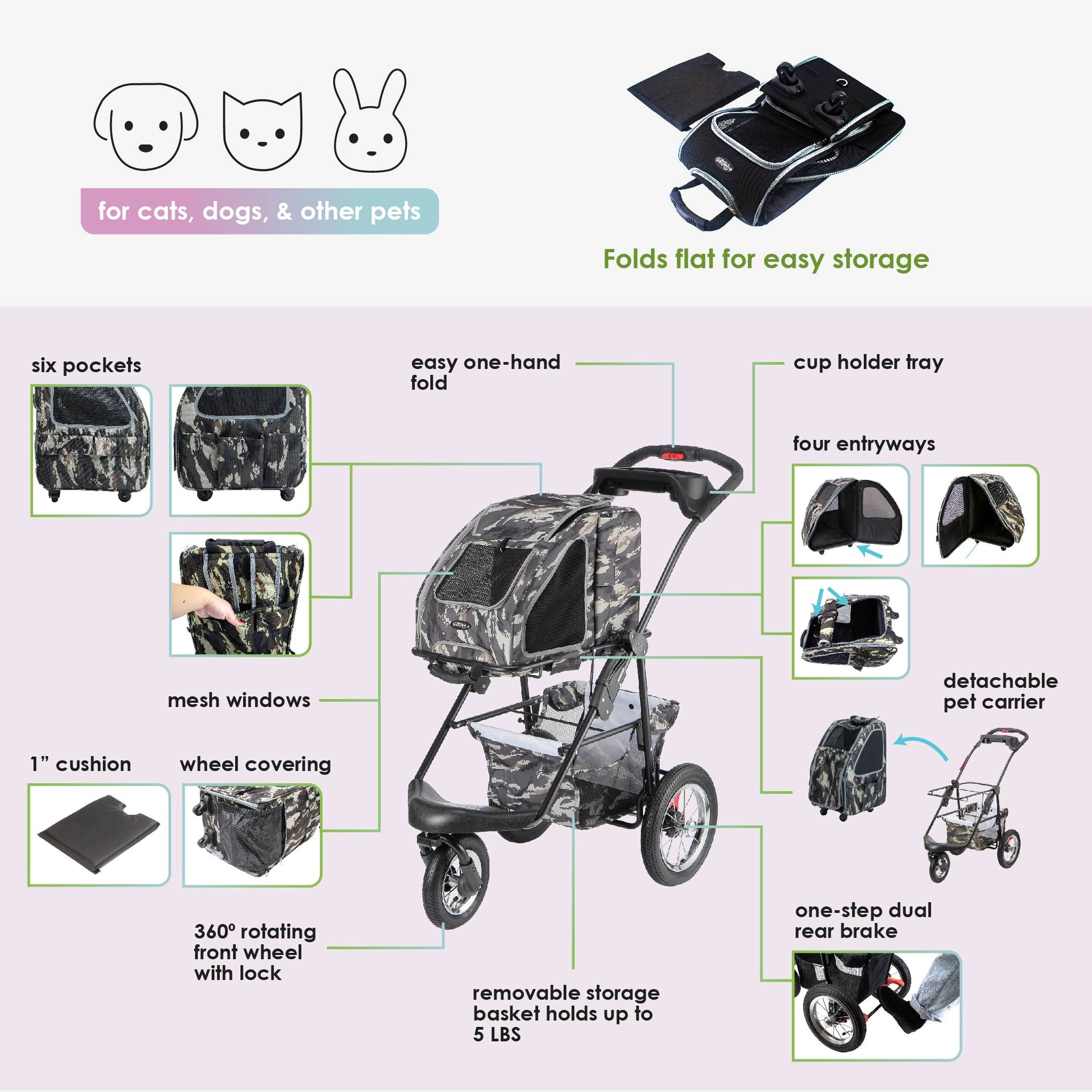 5-in-1 Complete Travel System with PET CARRIER and PET STROLLER, Stainless Steel Shock Absorption Bike Tires, Sturdy, Lightweight, Large Storage Basket, Supports pets up to 25LBS