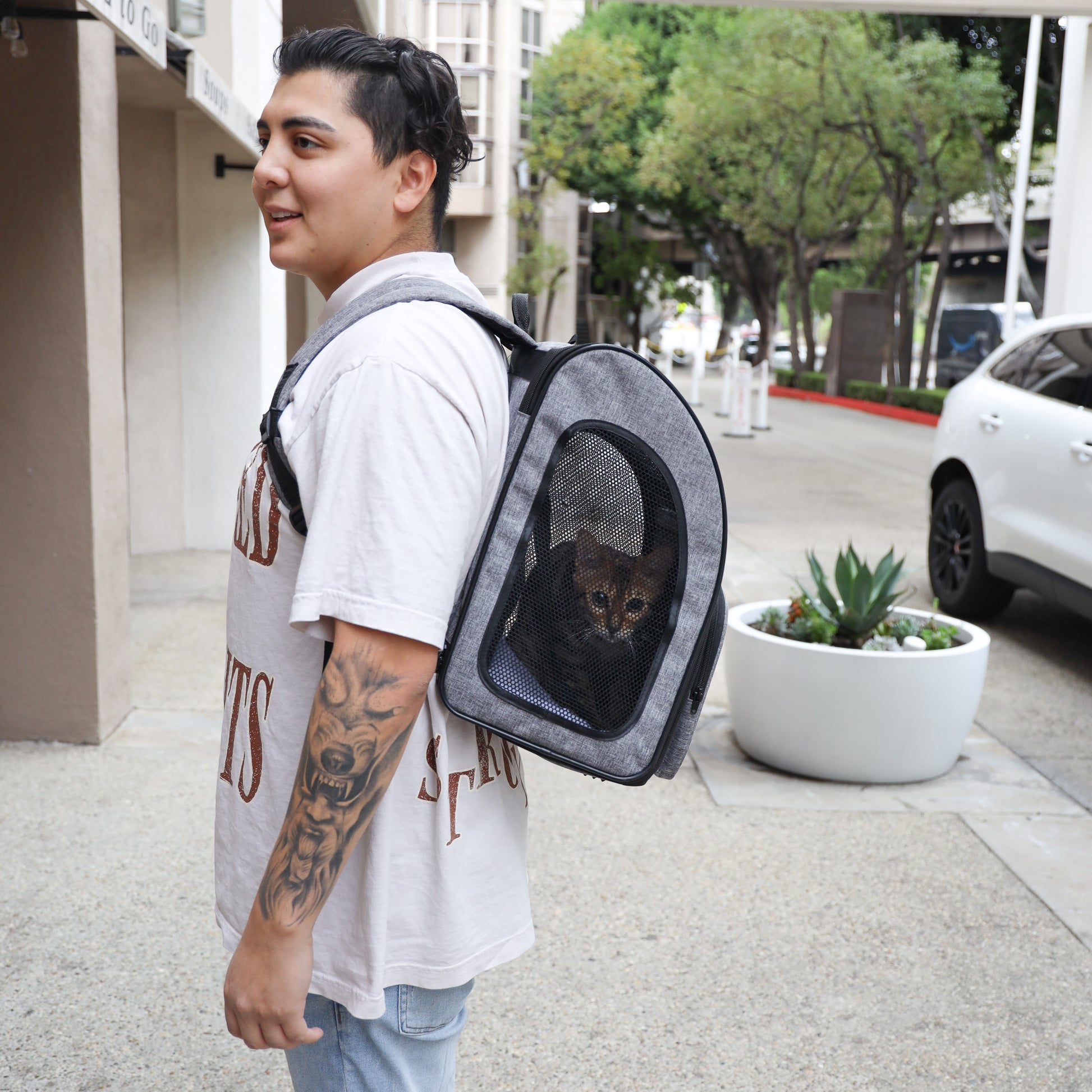 🚗 SAFETY FEATURES: Distraction is a leading cause of car accidents, so use the seat belt to secure The Backpacker during car rides for everyone's safety. The carrier also has a reflective light strip on the front for added visibility. It comes with a leash inside the carrier to ensure your pets stay safe and secure during travel.