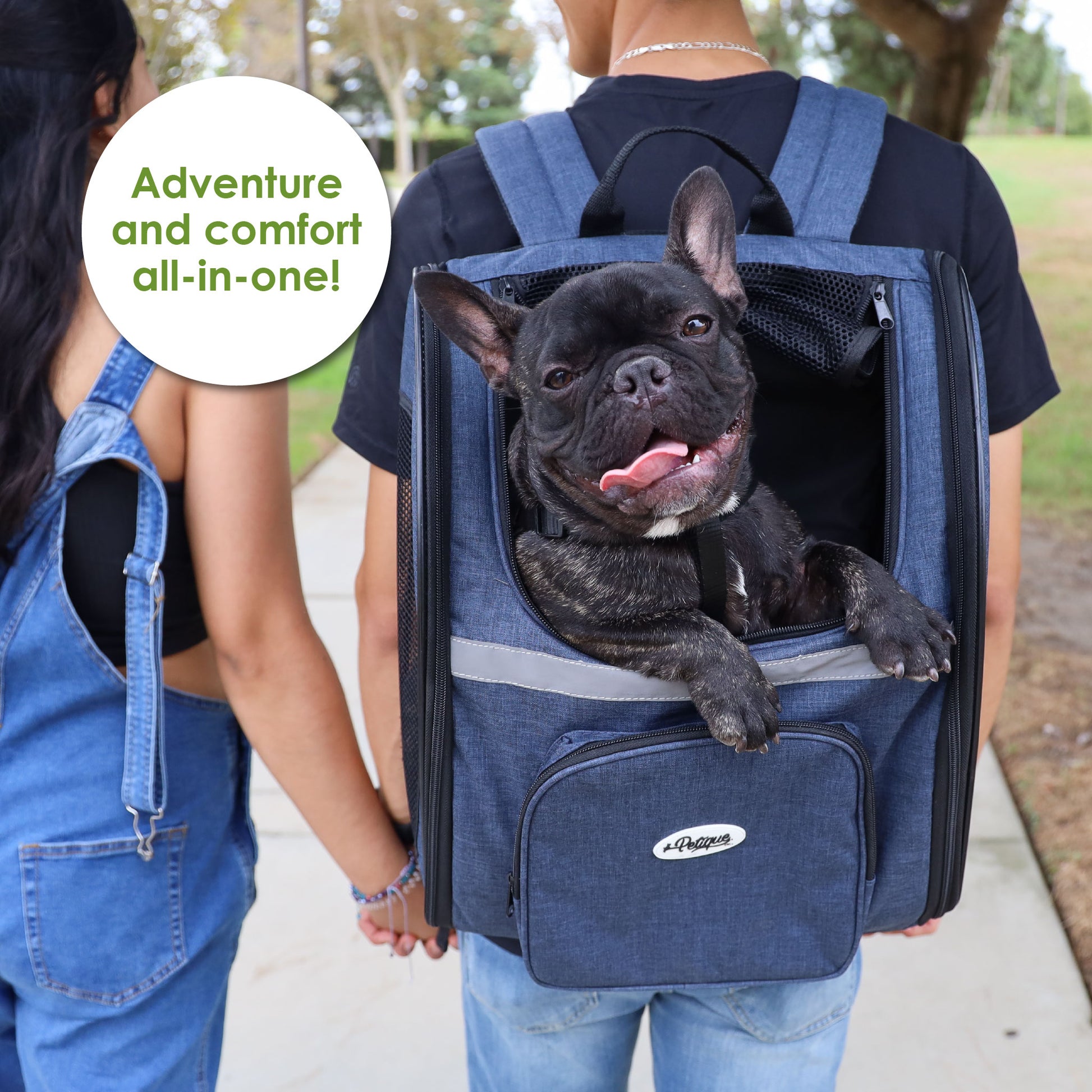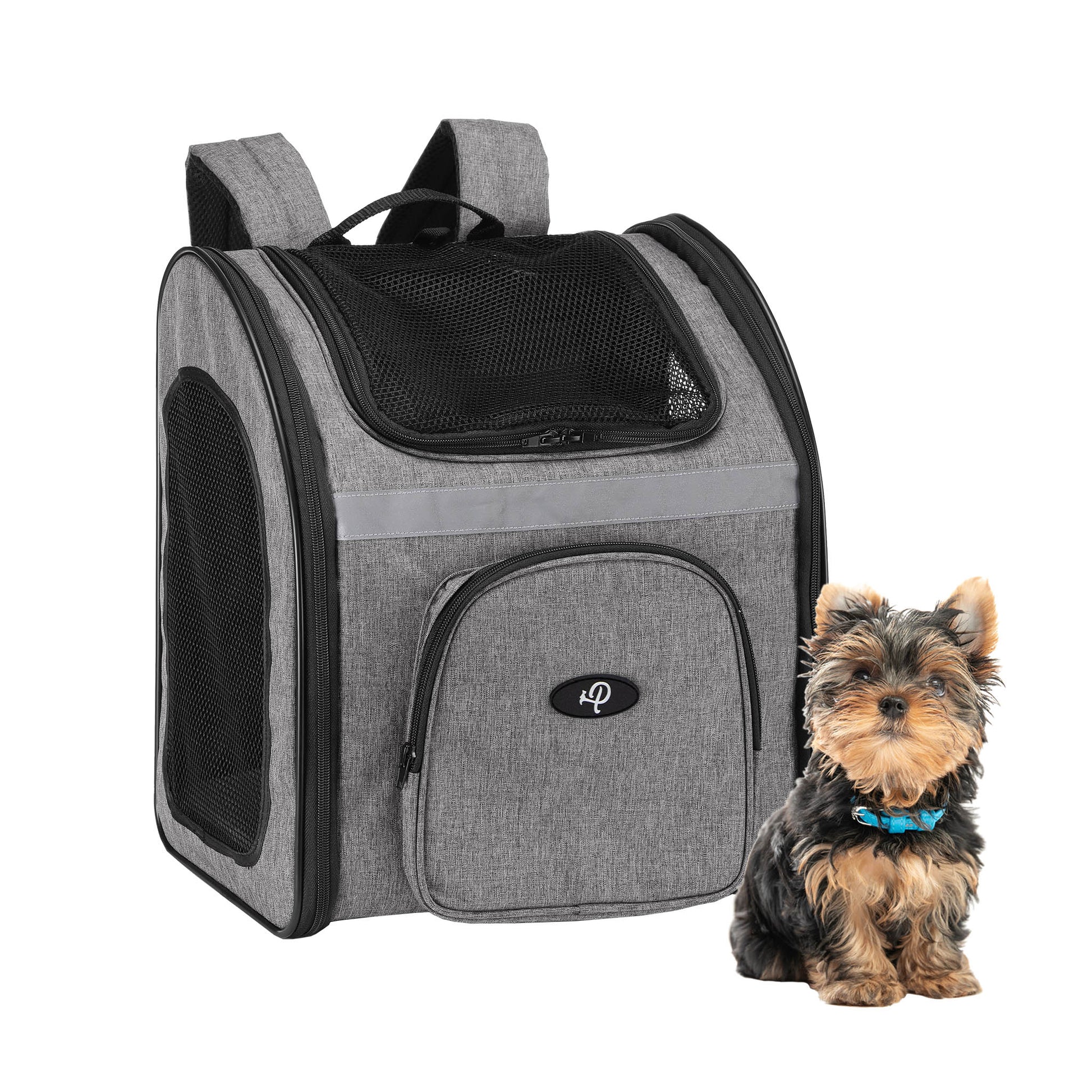 The Backpacker Pet Carrier for Small Dogs/Cats/Pets, Storage Pocket, Luggage Handle Slit, Leash Inside, Adjustable Straps, Reversible Mat, 3 Entryways, Folds Flat, Reflective Strip